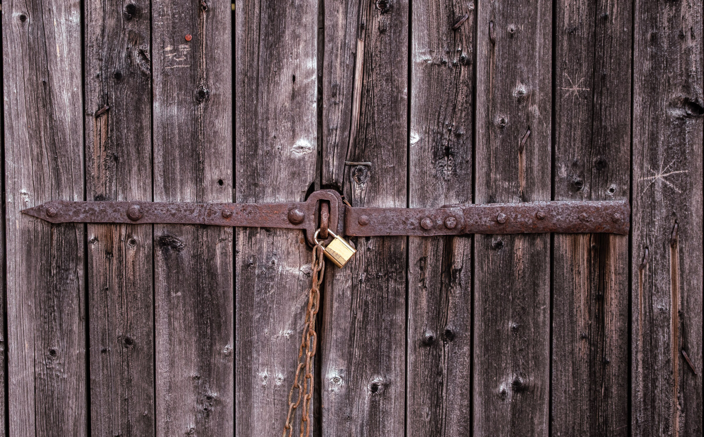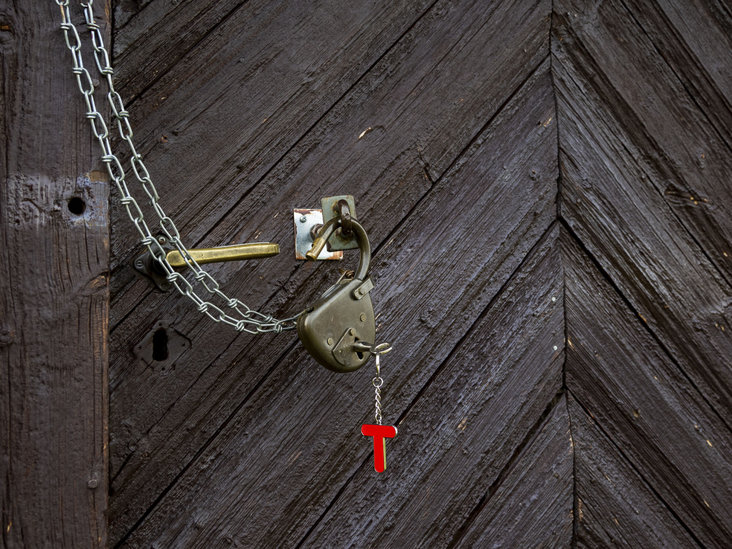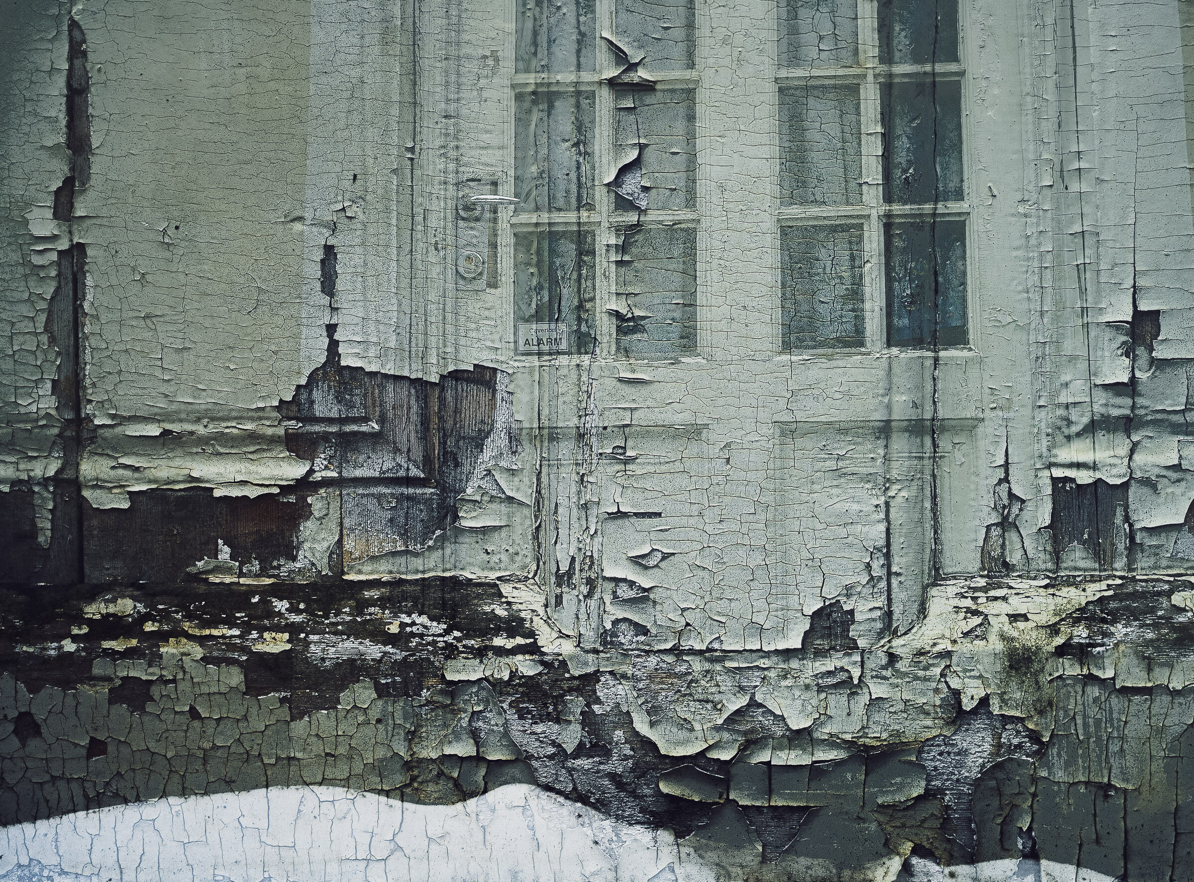 Dette bildet forteller en historie – man får lyst til å vite hva som skjuler seg bak døren. Et kreativt bilde som lar teksturen tale for seg selv. Fotografen har valgt en god vinkel som fremhever sprekkene i malingen, og nærbildet skaper en nesten abstrak