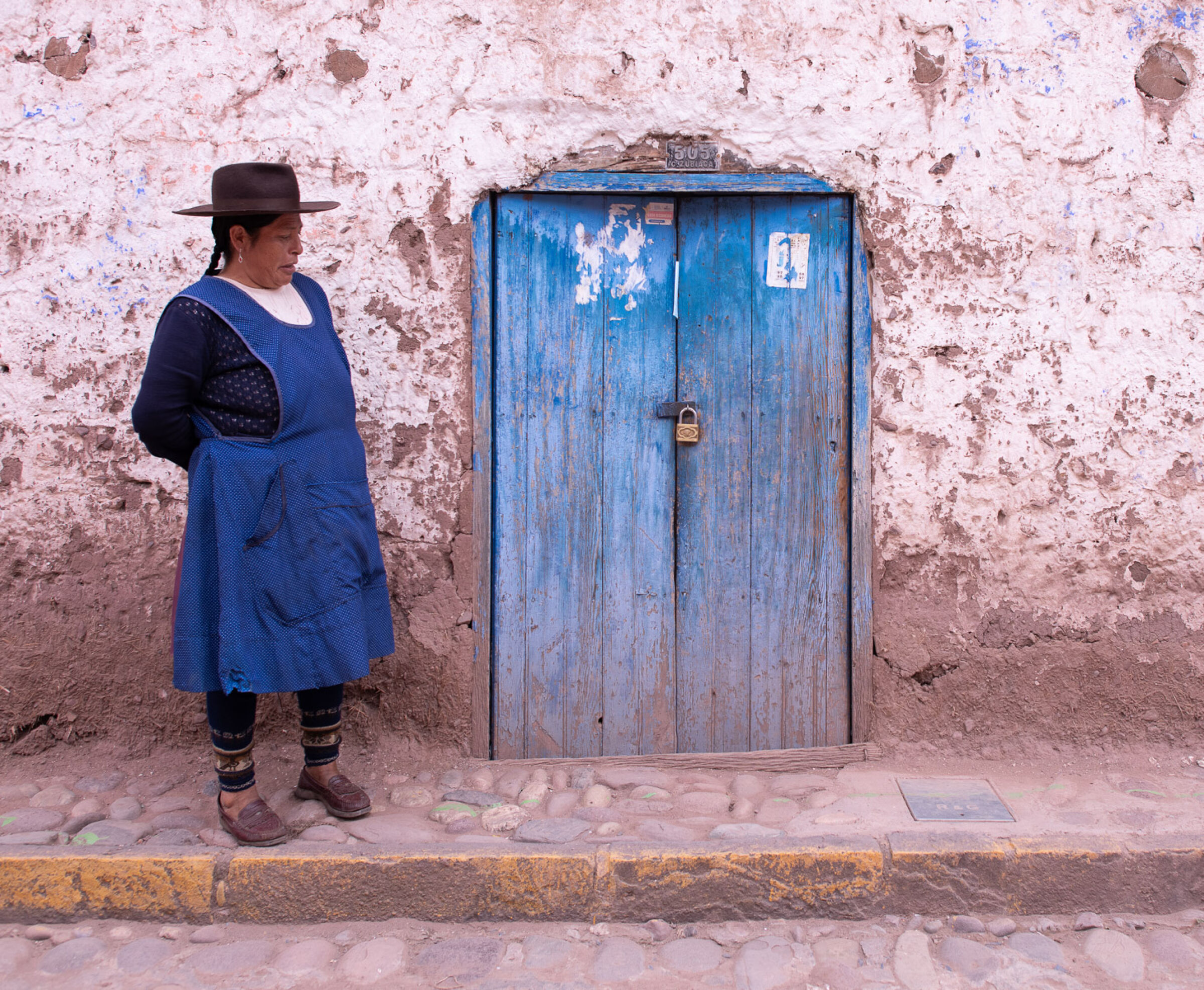 Et kreativt perspektiv som skiller seg ut! Vinkelen gir bildet karakter, og detaljene i omgivelsene trekker blikket mot døren på en fin måte. Et godt eksempel på hvordan enkel arkitektur kan bli kunst. Døren virker værbitt og ekte. God komposisjon.