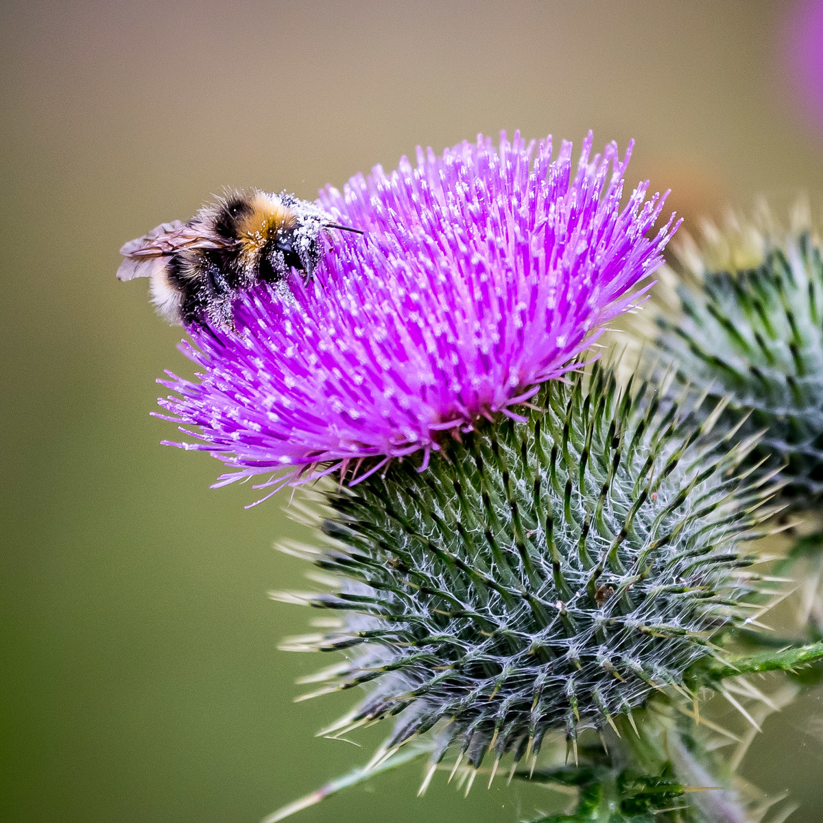 En bie på en tistel blomst |